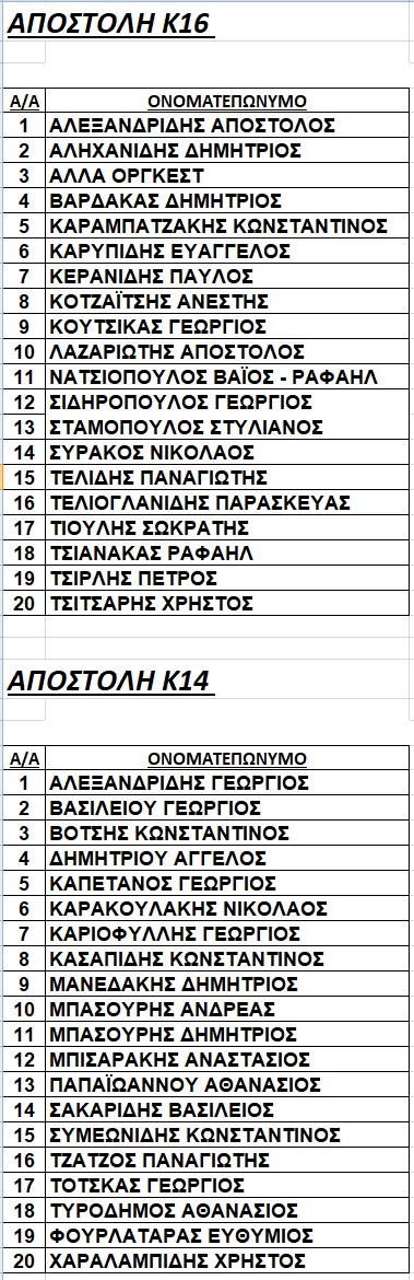 Οι αποστολές των Μ.Ο. Κ14 & Κ16 της Ε.Π.Σ. Κοζάνης για τον αγώνα στις 12-11-2025 με την Ε.Π.Σ. Πιερίας.