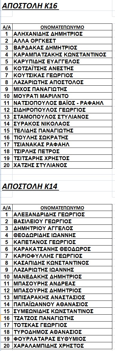 Οι αποστολές των Μ.Ο. Κ14 & Κ16 της Ε.Π.Σ. Κοζάνης για τον αγώνα στις 19-11-2025 με την Ε.Π.Σ. Λάρισας.