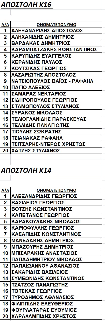 Οι αποστολές των Μ.Ο. Κ14 & Κ16 της Ε.Π.Σ. Κοζάνης για τον αγώνα στις 03-12-2025 με την Ε.Π.Σ. Τρικάλων.
