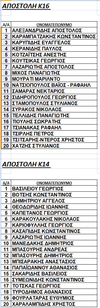 Οι αποστολές των ομάδων Κ14 & Κ16 της Ε.Π.Σ. Κοζάνης για τον αγώνα στις 21-01-2026 με την Ε.Π.Σ. Γρεβενών για το Πρωτάθλημα Προεπιλογής Εθνικών Ομάδων 2025-2026.