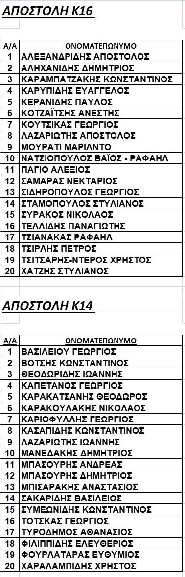 Οι αποστολές των ομάδων Κ14 & Κ16 της Ε.Π.Σ. Κοζάνης για τον αγώνα στις 04-02-2026 με την Ε.Π.Σ. Γρεβενών για το Πρωτάθλημα Προεπιλογής Εθνικών Ομάδων 2025-2026